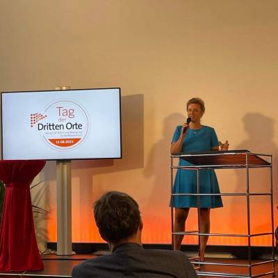 Vom „Dritten Ort“ im alten Wartesaal im Löhner Bahnhof wurde ihre Ansprache per Livestream in alle dritten Orte in NRW übertragen. Dank der Landesförderung und viel ehrenamtlichen Einsatzes ist auch in Löhne ein besonderer Ort, um Kultur zu erleben, entstanden.