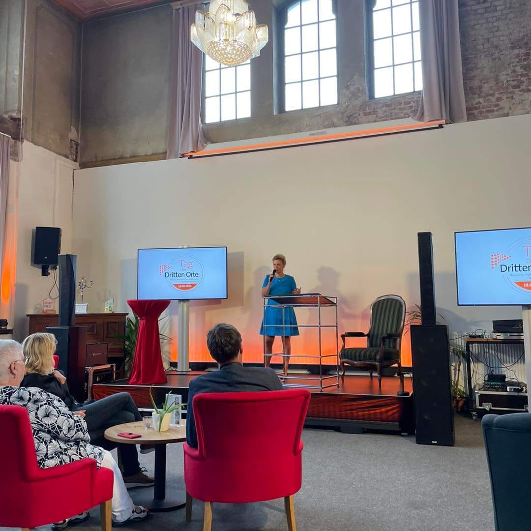 Vom „Dritten Ort“ im alten Wartesaal im Löhner Bahnhof wurde ihre Ansprache per Livestream in alle dritten Orte in NRW übertragen. Dank der Landesförderung und viel ehrenamtlichen Einsatzes ist auch in Löhne ein besonderer Ort, um Kultur zu erleben, entstanden.